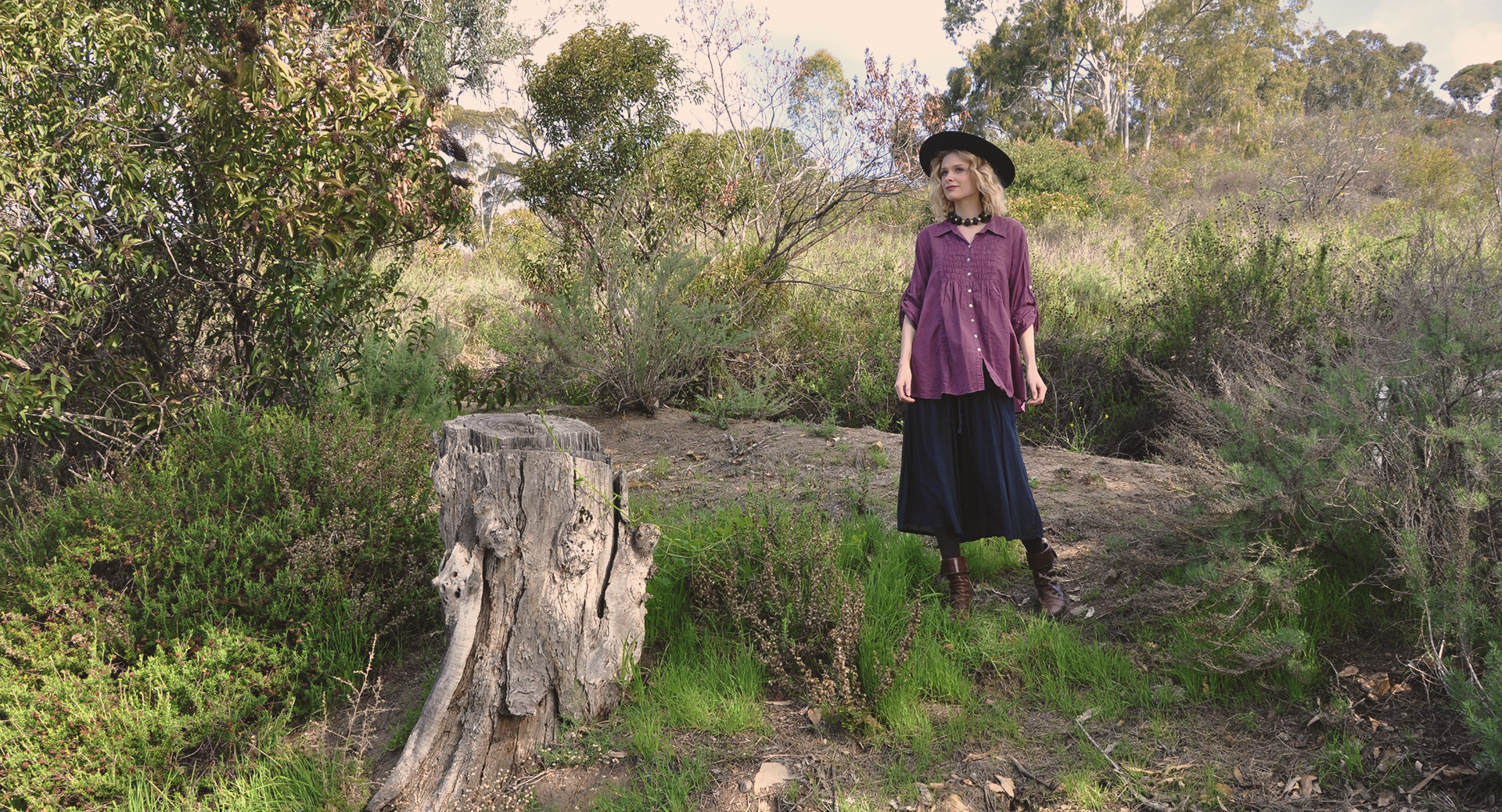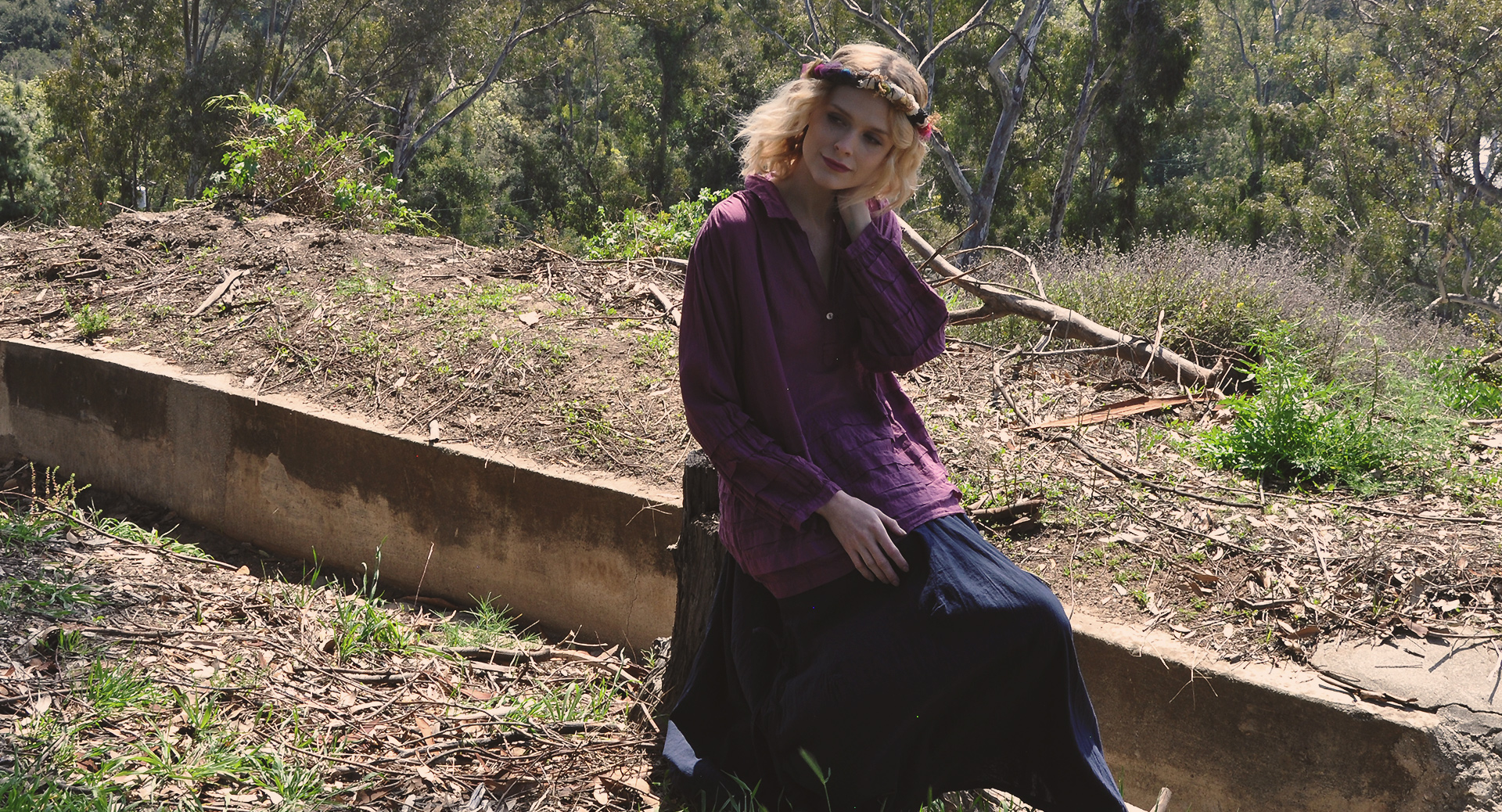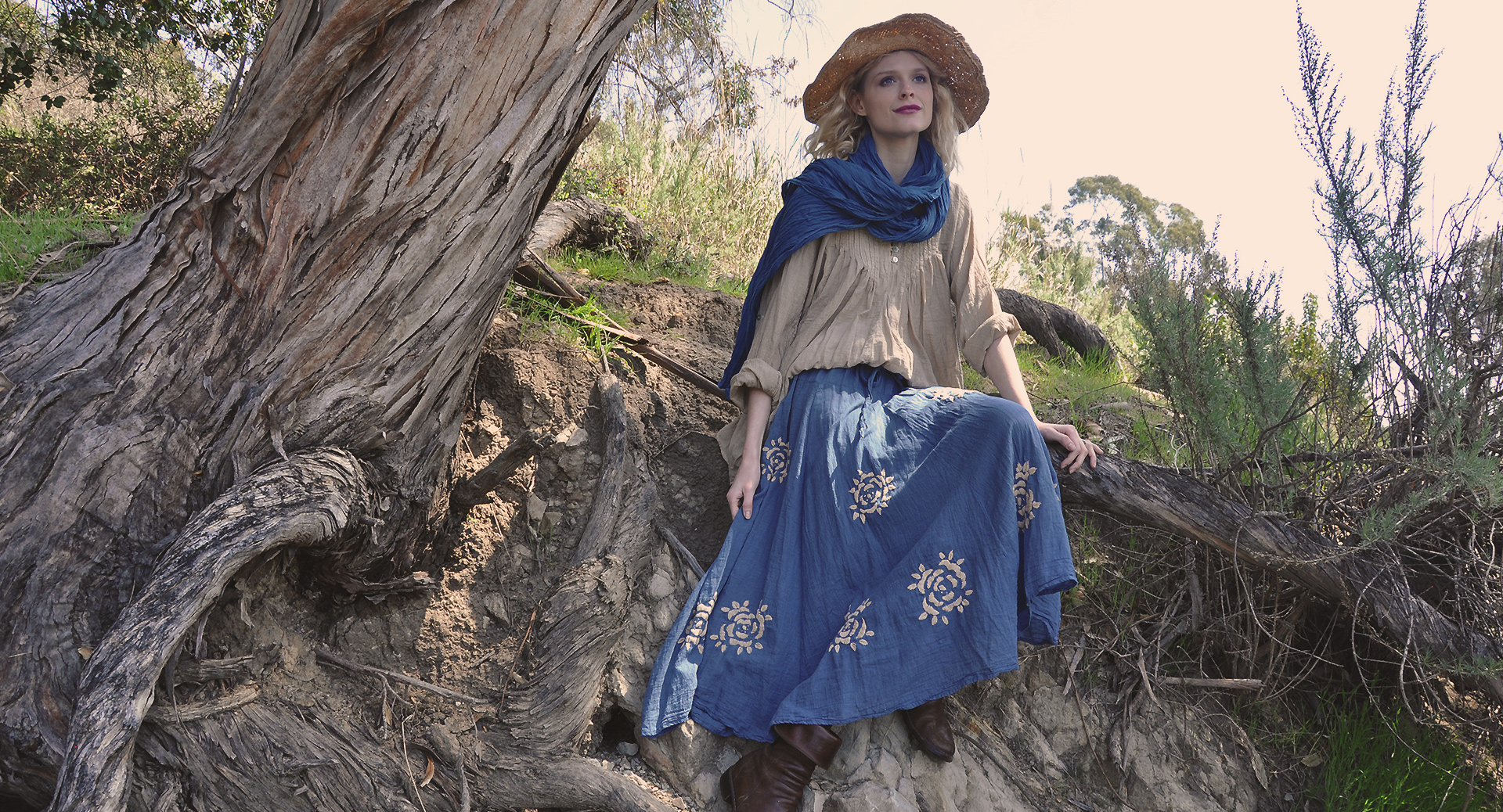 Breathe in the cool air. Feel the trees against your skin. We might have used the roots of the very tree you are leaning on or the leaves of the one across the bank for the dress you are wearing. Become one with nature in our softest hand dyed clothing.