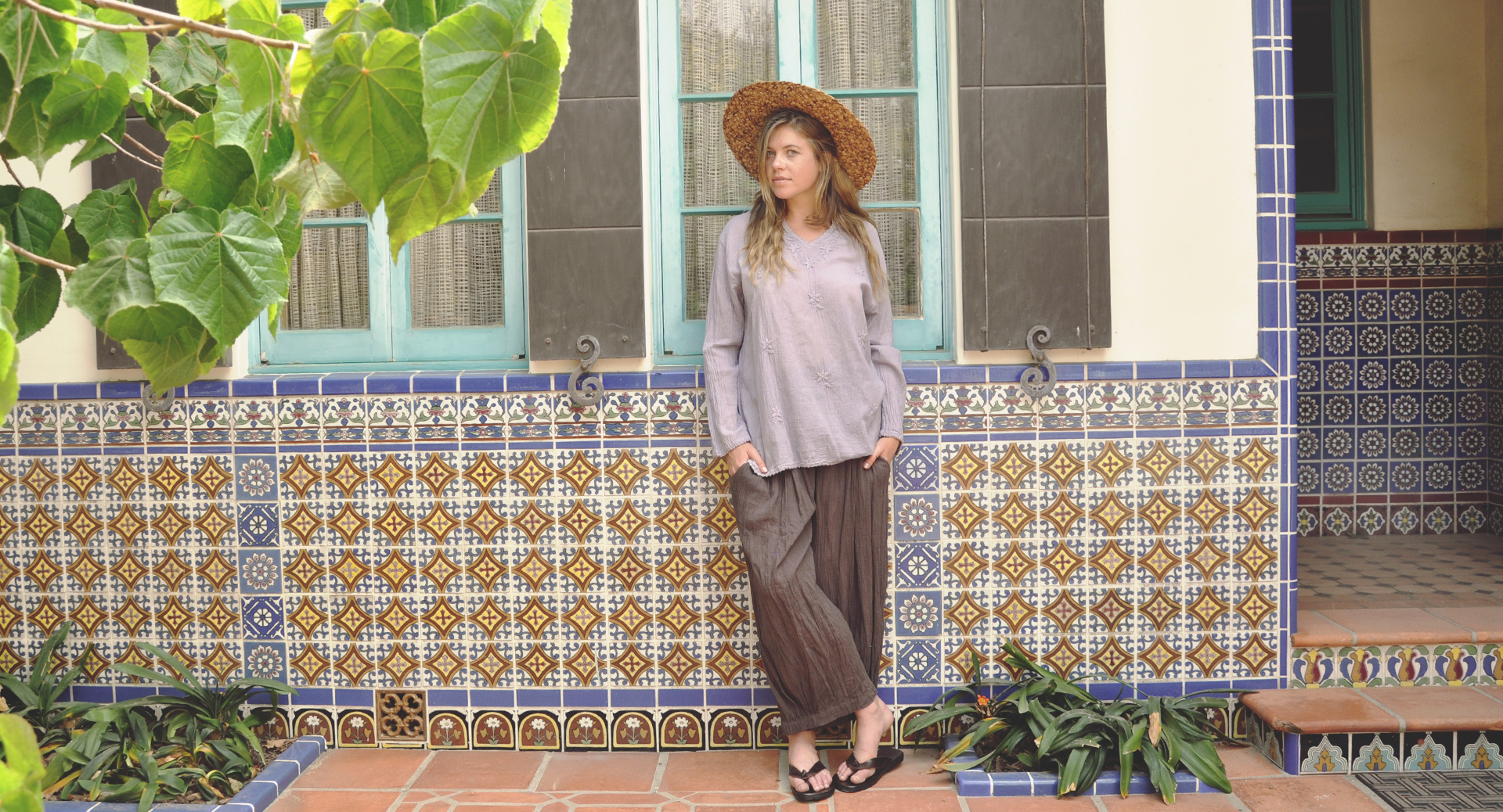 Care free tops and sweet tunics billow in the wind and hand embroidered flowers adorn the sweeping skirts. Pleats and tucks are embellished with hand crochet and fine lace. There is no resisting this collection.